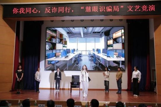 “从编写剧本、打磨细节,到最后在舞台上的表演,大家付出了很多。”参演人员罗裕琛表示,“参与这次活动,我们学到了很多反诈知识,希望能通过这种有趣的方式把防骗知识传递给大家。”其中,新闻传播公司员工带来的小品《再多看你一眼》受到了现场同学的好评。