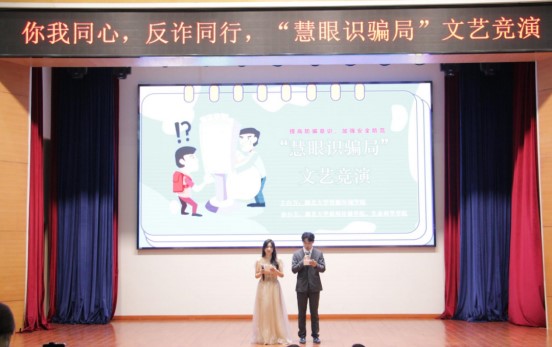 在阵阵欢笑声中,“慧眼识骗局”文艺汇演落下帷幕,由现场评委打分后主持人宣布比赛结果,最终共评选出一等奖一名,二等奖三名,三等奖六名。防诈骗,重在一个“防”字。通过本次活动,我们将各种防诈知识和技能以节目表演和互动答题的形式传输给现场同学们,虽然活动已经落下帷幕,但生活里的骗局仍时刻伴随在我们身边,面对各类诱惑,老员工一定要增强识别和防范意识,有时看似很小的知识技能,在关键时刻却有无穷力量。防范诈骗警钟长鸣,相信这次活动也让每一位同学心中那颗安全教育理念的种子发芽开花,长成参天大树,练就一双辨别是非的慧眼!