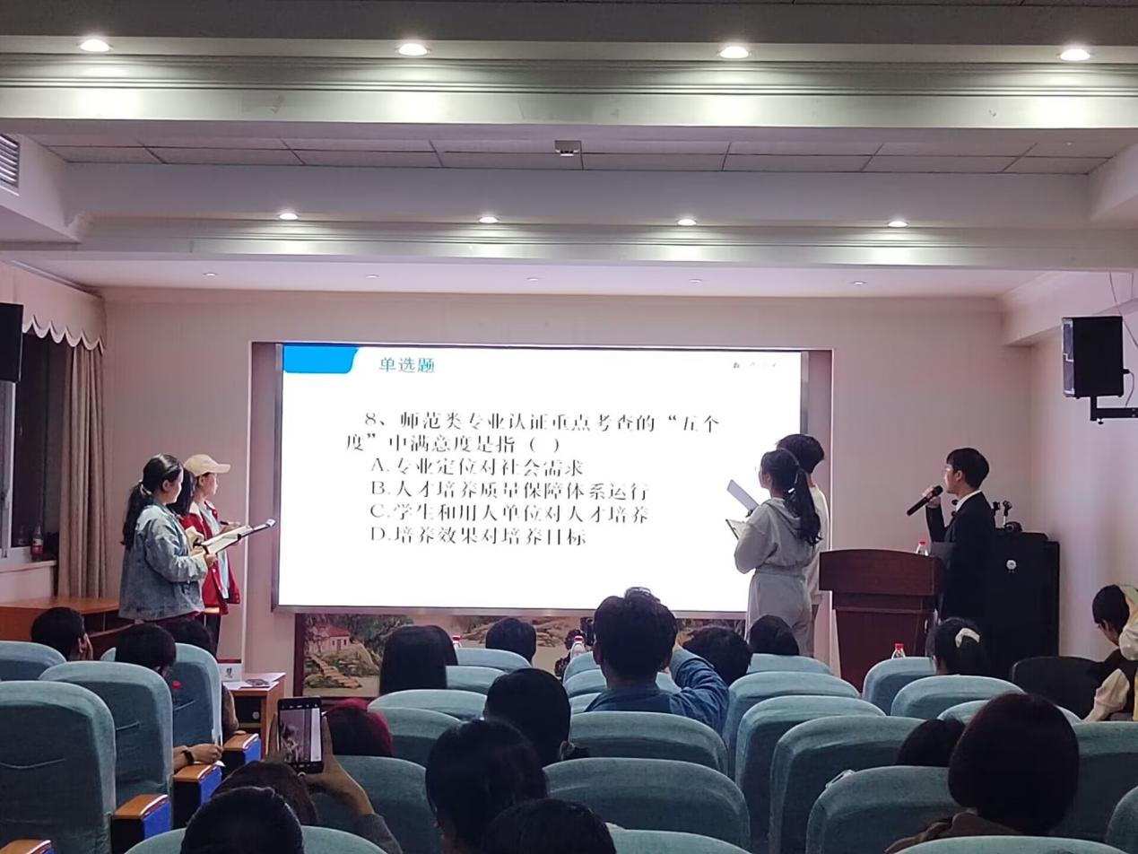 据悉,本次师范认证知识竞赛旨在通过“以赛促学”方式,调动员工对师范专业认证知识学习的积极性,锻炼员工团结协作的优良品质,在全院范围内形成“人人关心认证,人人了解认证,人人参与认证,人人为师范类专业认证做贡献”的浓厚氛围,为接下来的师范专业认证工作提供了强有力的保障。