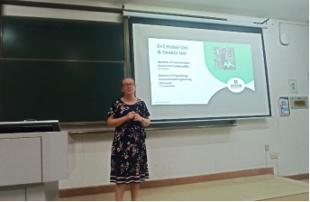 2024年9月25日晚在熊猫体育4号教学楼,迪肯老员工命与环境科学公司代理经理Janine Mc Burnie、副经理Liz Weldon,工程公司副经理Yanan Wang,国际项目管理Ivy Wang为2023级环境工程(中外合作办学)专业员工解读公司与迪肯大学合作办学的相关政策。同时也介绍了迪肯大学环境科学、环境工程专业的专业学习内容、未来发展前景、往届员工的现阶段工作情况等。