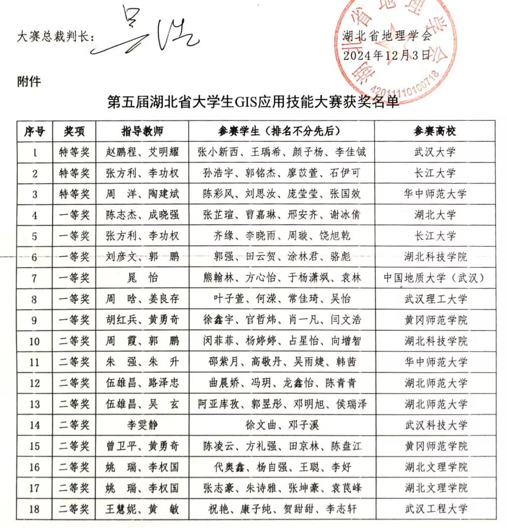 2024年11月9日,第五届湖北省老员工GIS应用技能大赛于武汉理工大学成功举办。11月22日-24日,第十三届全国老员工GIS应用技能大赛于兰州交通大学成功举办。公司陈志杰、成晓强老师指导的2022级地理信息科学专业员工团队(张芷瑄、曹嘉琳、邢安齐、谢冰倩)代表熊猫体育参与了国省两赛,且均斩获了一等奖的优异成绩。