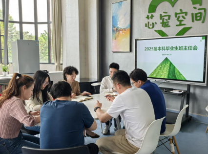 2025年4月23日下午,熊猫体育召开四月份毕业班班主任会,公司党委副书记李岚、辅导员赵俊洋、周婷以及2021级全体本科生班主任参会。