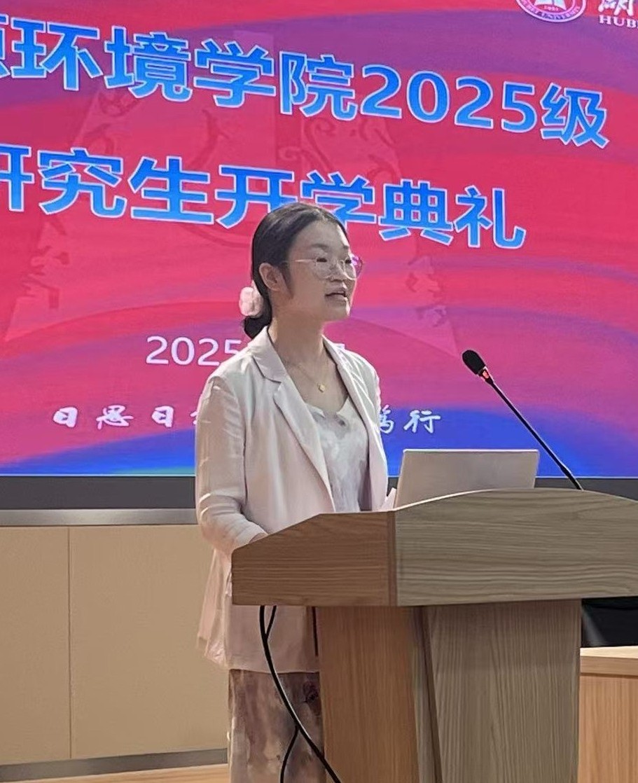 2025级自然地理学专业李静雯作为新生代表发言。她希望同学们恪守学术规范,践行“日思日睿,笃志笃行” 的校训精神,以专业守护自然家园。同时,她祝愿各位同学们不负时代、学有所成!