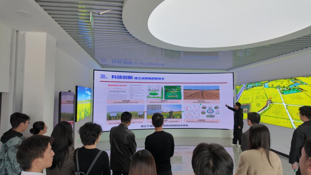 随后,调研组前往沙洋油菜博物馆、曾集镇张池村油菜科技小院及沙洋县人才公寓参观学习。在油菜博物馆,师生系统了解了沙洋作为“中国油菜之乡”的产业历史脉络与文化积淀。在张池村油菜科技小院,师生实地观摩油菜试验田与绿色种植技术实验室,并与驻点科研人员深入交流。沙洋县人才公寓作为引才留才的重要保障工程,设施完善、环境舒适,配套服务完善,参观师生纷纷表示感受到了沙洋县对高层次人才和青年创业者的重视与支持。