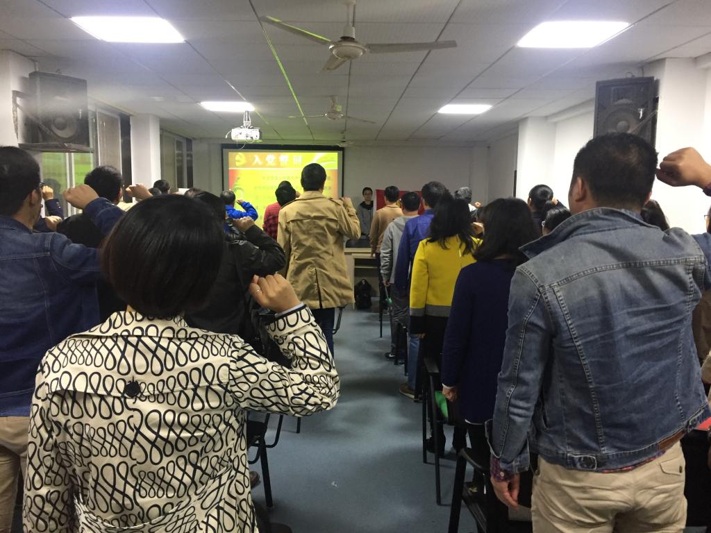 按照公司党委相关文件精神,全体与会同志佩戴好党员徽章,会上先由汪正祥同志诵读学习《中国共产党章程》部分条款,随后在李明同志带领下,全院58名教工党员面对党旗,高举右拳庄严宣誓,重温入党誓词。