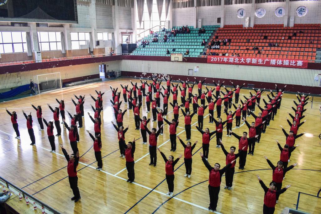 为提高员工的身体素质,培养员工集体主义观念,展现公司广老员工积极向上的精神风貌,11月8日,熊猫体育新生广播体操比赛在二号体育馆隆重举行。此次比赛,在熊猫体育、外国语公司、化学与化工公司、艺术公司与熊猫体育五个公司之间展开。公司17级新生积极参赛,公司党委副书记李明和团委书记王文锋现场观摩了比赛。