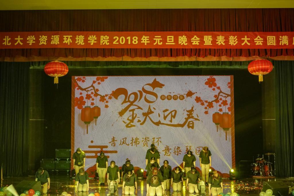 此次元旦晚会分为“春芽初长”“夏花灿烂”“ 秋实累累”三个篇章,共有11个节目。节目形式丰富多样,小品、舞蹈、哑剧、朗诵、合唱等应有尽有。晚会在晚上7点准时开始。当倒数三声的钟声敲响,全院师生共同挥舞起手中的荧光棒,齐声喊道:“三!二!一!”舞台两侧喷射出绚烂的礼花,开场舞《水》瞬间点燃了会场的氛围,“唐人街”的舞者们用饱含深情的舞蹈向观众诉说了水资源短缺的现状,呼吁大家珍爱水资源。16级环工专业带来舞台剧《老人与山》,当剧中的老人为保护山林而纵身一跃之时,甚至有观众为此感动落泪。14环国和17地信专业联合表演的《MORE YHAN A TV STAR》用充满节奏感的说唱,把晚会气氛推向新的高潮。16级环工专业和研究生们带来的现代舞《YOU》、WILD STRAWBERRY乐队演唱的《IT IS SO EASY》、16级地信专业带来的民族古风舞《凉凉》,呈现出古今中外相得益彰之美。领略完中原大地云佩霓裳的翩翩神采,来自17级地科专业的同学们踩着欢快节奏带来《喀什噶尔》,又将观众的心引向充满异域风情的喀什。17级环国专业则以哑剧的形式和夸张的动作展现了一颗钉子带来的生活趣事,引得台下笑声连连。
