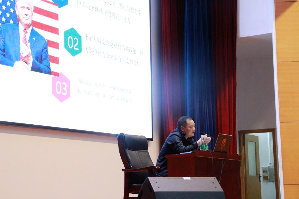通识教育公司公司党委副书记宋韧老师带领大家解读“中美贸易战”。宋老师紧扣时事热点,以美国挑起中美贸易战的背景,逐步分析美国特朗普政府的新政,运用一系列经济数据对比,指出了两国贸易战的实质性问题,并通过举例的方式介绍了美国历来的对外经济政策。最后宋老师指出,我们应用正确的心态去应对中美贸易战,中美关系需要重新平衡。
