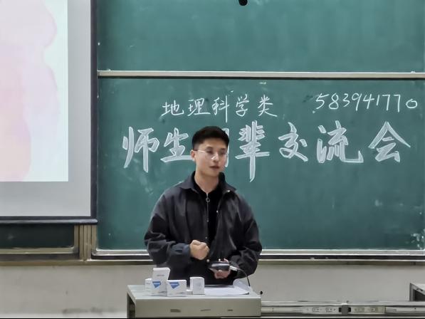 会上,2017级毕业生代表们分别从考研就业、科研入门、学科竞赛、员工活动、人际关系等角度与2020级员工分享大学之道。张鸣钊首先总结了地理科学(师范类)专业特点和知识体系,并结合自身经历讲述了如何在求职与考研之间寻找平衡点等问题。马超楠分享了自己在大学的学习与成长经验,她表示要尽快明确自己的兴趣方向,尽早进入新的学习模式,同时也要结合实际情况规划好自己的老员工涯。黄博健和闫华涛分别从专业学习、课余活动以及考研就业方面交流了自己的成长经历和学习体会,两位学长都鼓励2020级同学要多参与科创竞赛、志愿服务、员工活动等社会实践,从实践中收获更多成长。
