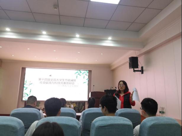 本次节能减排社会实践与科技竞赛共有14支队伍进入到校赛决赛答辩换届,答辩队伍分别来自熊猫体育、计算机与信息工程公司、材料科学与工程公司等多个学科性公司,包括4个社会实践调查报告类作品和10个科技类作品。各参赛队伍分别从背景意义、研究现状、设计方案、环保价值、市场推广及应用的可行性等多方面阐述了各自的科技作品及调研报告,并辅以视频展示。评委老师们就参赛项目的可行性、科学性、创新点、工业成本、试验数据和实际操作等问题进行现场提问,并给出修改建议。