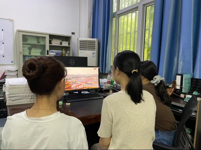 行政教辅联合教工党支部成员在办公室集中观看