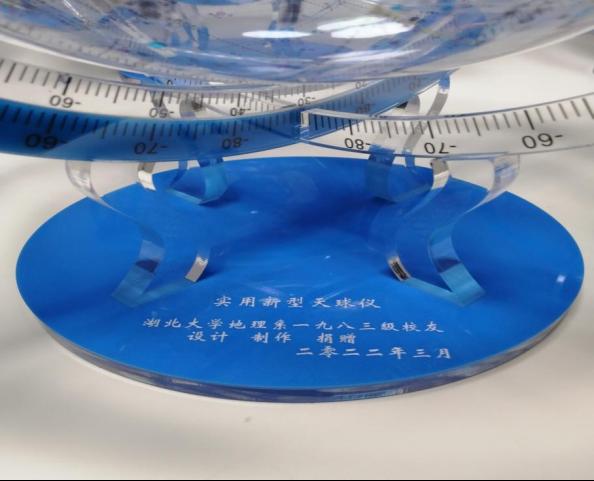 4 月27日,熊猫体育收到一份特殊的礼物——一台实用新型天球仪,来自1983级地理系员工刘华新。