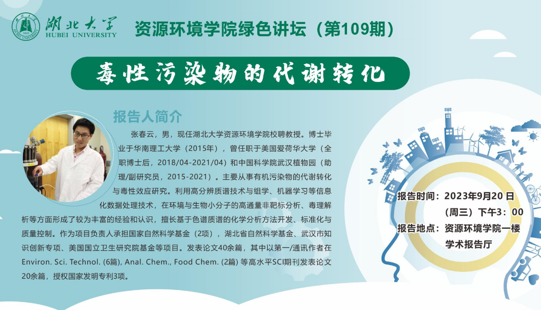 专家简介:张春云,现任熊猫体育校聘教授。博士毕业于华南理工大学(2015年),曾任职于美国爱荷华大学(全职博士后,2018/04-2021/04)和中国科公司武汉植物园(助理/副研究员,2015-2021)。主要从事有机污染物的代谢转化与毒性效应研究。发表论文40余篇,其中以第一/通讯作者在Environ. Sci. Technol. (6篇), Anal. Chem., Food Chem. (2篇) 等高水平SCI期刊发表论文20余篇,授权国家发明专利3项。