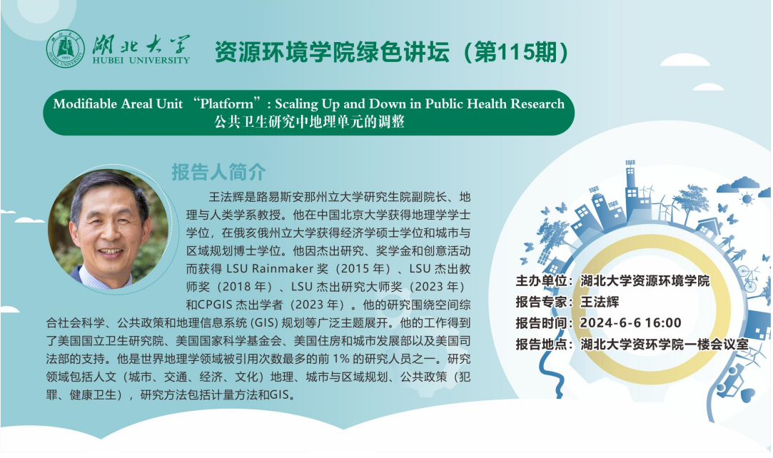 学术报告:Modifiable Areal Unit “Platform”: Scaling Up and Down in Public Health Research(公共卫生研究中地理单元的调整)