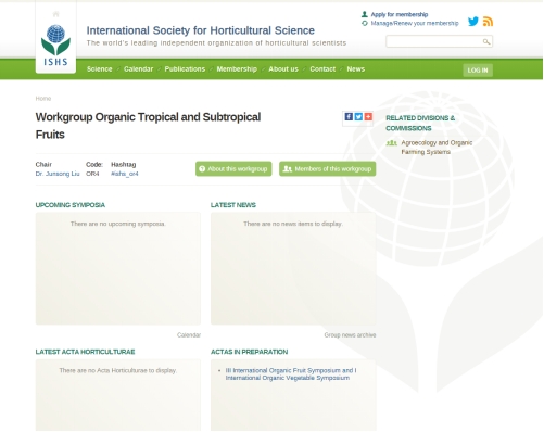 3月9日,刘俊松教授收到国际园艺学会总部(比利时)发来的贺信,祝贺他荣任国际园艺学会有机热带和亚热带果树学会主席(Chair of ISHS Working Group Organic Tropical and Subtropical Fruits)。目前,国际园艺学会(ISHS)有机热带和亚热带果树学会会员成员来自世界60多个国家,为学界优秀专家代表。