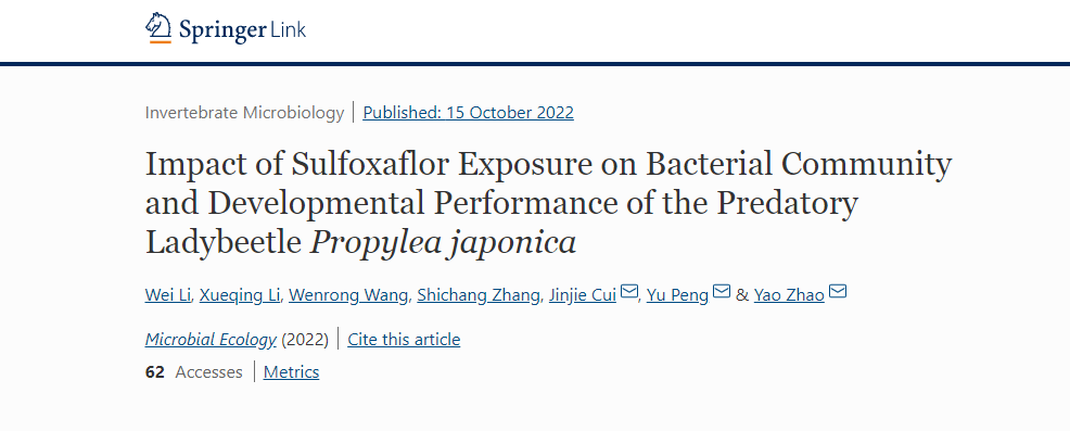 论文链接:Li W, Li X, Wang W, et al. Impact of Sulfoxaflor Exposure on Bacterial Community and Developmental Performance of the Predatory Ladybeetle Propylea japonica[J]. Microbial Ecology, 2022: 1-14. https://doi.org/10.1007/s00248-022-02122-5