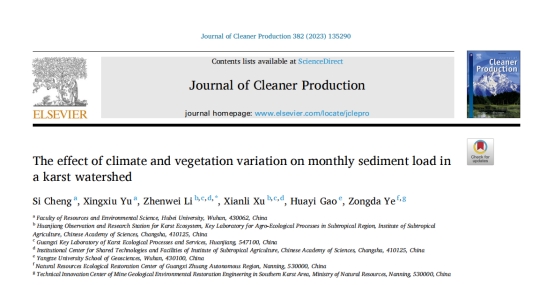 近日,公司于兴修教授团队博士研究生程思在中科院一区Top期刊《Journal of Cleaner Production》(IF=11.072)发表题为“The effect of climate and vegetation variation on monthly sediment load in a karst watershed”的科研论文。该研究运用偏最小二乘结构方程模型,揭示气候和植被变化对喀斯特流域月尺度输沙量的影响。