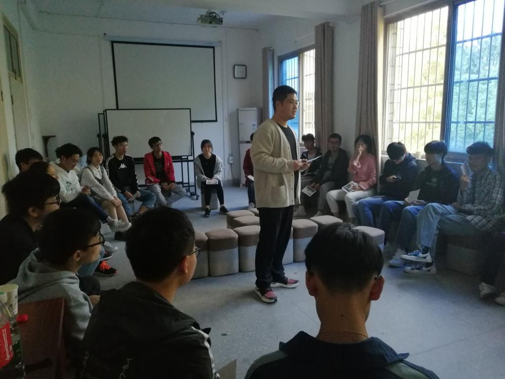 2019年11月15日晚,环境工程(中外合作)1901全体员工在校医院四楼开展此次新生心理团辅活动。