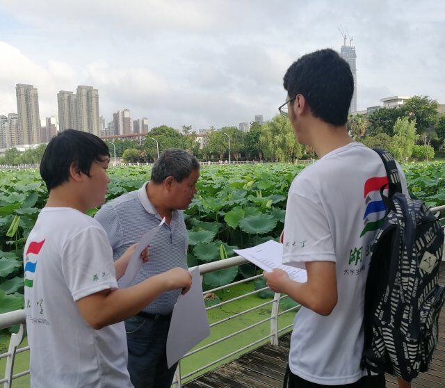 团队成员到达沙湖公园时,此时沙湖公园已有大量锻炼老人及游玩旅客。经过短暂讨论,团队决定在沙湖公园范围内进行随机问卷调查,了解该地区人员对于湖泊保护和环境污染的认识情况。最后十一点时,各小组成员于湖大附小门前集合,汇总各组采集数据,结束本次考察。