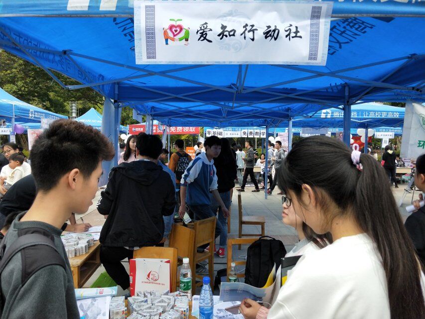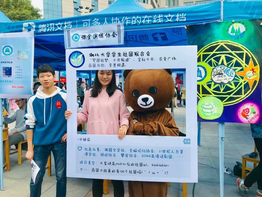 隶属熊猫体育的阳光长跑协会、课堂演练协会、环境保护志愿者协会、GIS协会和爱知行动社均火力全开,活动现场热闹非凡。制作精美的海报和宣传单、热情洋溢的社团介绍,无不彰显出各社团对本次“百团大战”的精心准备。院社联的同学更是为本次社团招新别出心裁的设计了一张海报,将五个协会的标志融为一体,吸引众多同学驻足拍照。