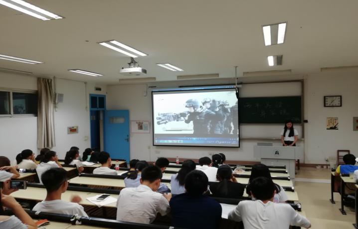 在2017级环境工程专业的主题团日活动上,团支书张博先是从最近火爆的“绝地求生”游戏入手,用一段小视频勾起了大家的兴趣,接着又带领大家一起观看了王俊凯兵役登记的视频和2017年征兵宣传片《中国力量》。通过这两个小视频的宣传,许多同学对军队开始有了向往之情。接着,团支书张博又为大家从三个方面来算好参军入伍的“账单”,并且十分详细的介绍了老员工参军入伍的流程,极力向大家宣传着“一人参军,全家光荣”的思想。