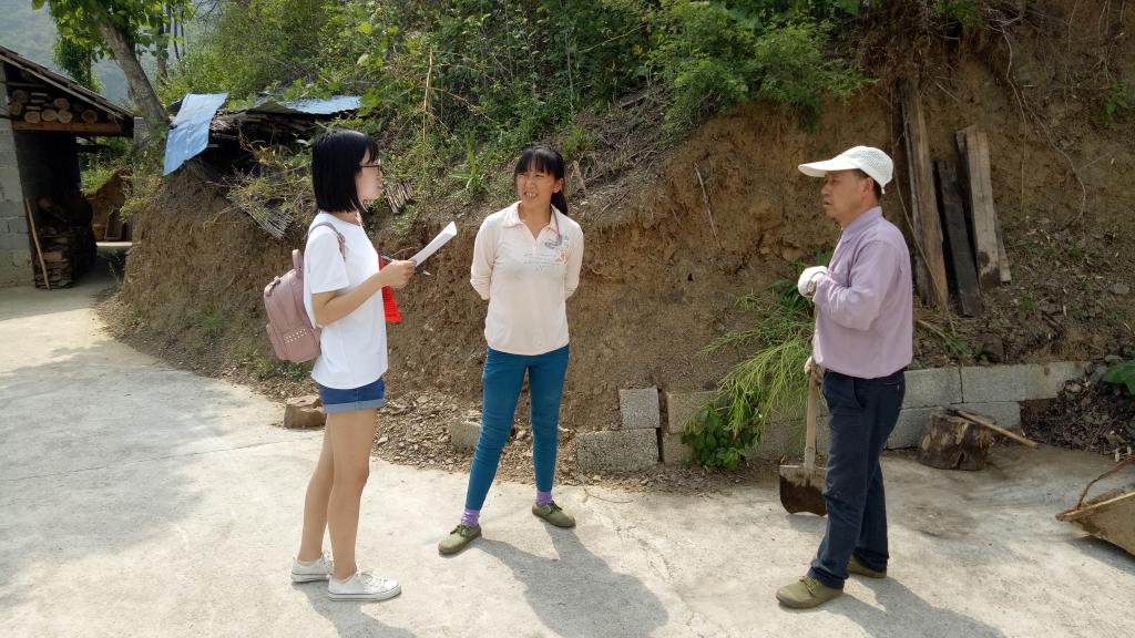 由于中阳垭村地广人稀,山路崎岖以及村民沟通、方言差异等导致走访出现困难。上午八点,在驻村主管“精准扶贫”工程韩局长的帮助下,团队成员顺利前往距离较远的3组村民家中走访。在村民处,团队获得了关于中阳垭村土地利用类型、产业结构、资源禀赋等的一些情况,同时了解到当地村民大都支持本村发展旅游业,在土地平整以及道路建设方面有较大需求。