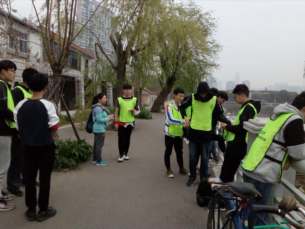 上午八点十分,志愿者们在院门口准时集合之后,前往湖大附小与其他人汇合,并分发工具,兵分两路前往沙湖。活动过程中,志愿者们发现湖边路上,烟头、塑料之类的垃圾居多且捡拾难度较大。即便如此,志愿者们仍然有说有笑,积极乐观地一起忙碌着,面对困难毫不退缩,为沙湖献上自己的一份力。志愿者康昆在活动中则经常地鼓励着周围的伙伴,用其乐观的精神感染着整个团队。整个活动进行地热火朝天,其乐融融。值得一提的是,一些经过的路人还向志愿者们提出了许多建设性意见,给志愿者们提供了不少新的思路。例如将一栋破旧的老楼重新粉刷一遍,以不影响市容;清理一下附近的建筑垃圾;还有建议说志愿者应增加专门培训,以便开展活动时能够更加专业。