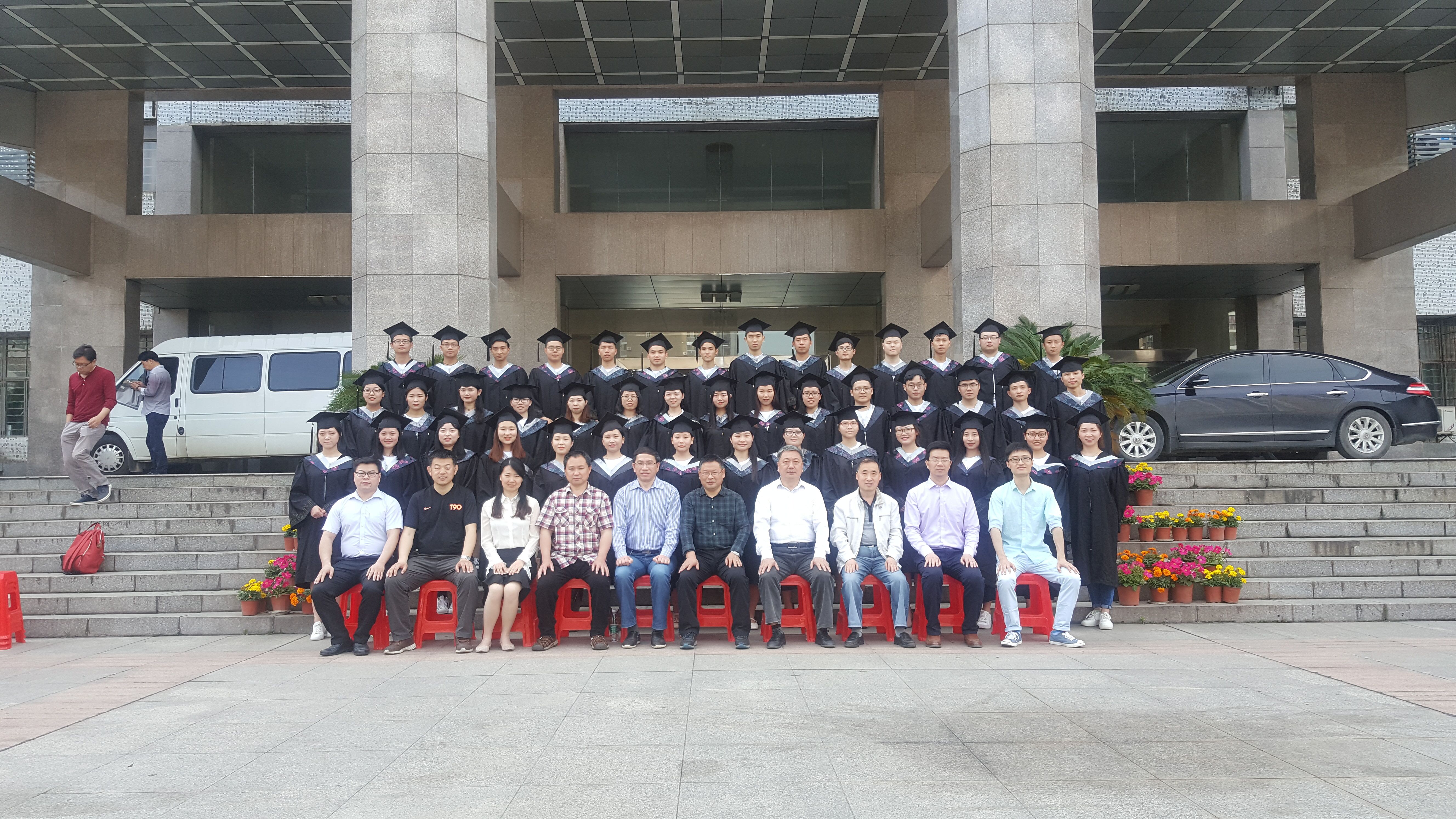 2017年5月10日校领导与公司毕业生拍照留念 来源:熊猫体育发布时间:2017-05-11点击率: 5月10日上午七点半,公司2013级全体毕业生于行政楼前合影,党委书记尚钢、董事长赵凌云、副董事长杨鲜兰与公司毕业生拍照留念。