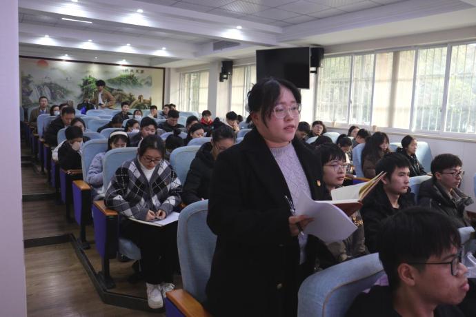 随后,团支部书记赖俊泽向全体与会领导、老师和团员青年做2023年度团支部团员和青年主题教育开展情况的工作汇报。2023年,在公司团委的统一领导和公司团委精心指导下,2022级生态学团支部围绕思想旗帜、坚强核心、强国复兴、挺膺担当等专题,采取多种学习形式,先后开展了“青春与祖国同行”“强国复兴担使命,实干奋进我先行”“挺膺担当肯奋斗,奋楫笃行向未来”等主题团日活动,团员和青年覆盖率、出勤率均达100%