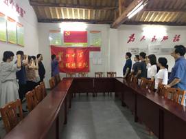 6.14下午,支部各老师到了大悟县新城镇东北的金岭村。金岭村是开国大将徐海东故里、湖北省精准扶贫试点示范单位、湖北省新农村建设试点示范单位。在金岭村大家考察了金岭村抓党建促脱贫攻坚、乡村振兴建设成果;在村支部重温了入党誓词;在红色记忆小屋追忆了革命先烈在各个革命战争时期的奋斗历程。