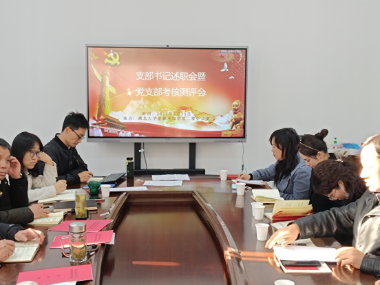 会议第四项,开展支部书记述职会暨党支部考核测评会。该阶段由人文地理与城乡规划教工党支部书记胡道华和地理学研究生党支部书记闫华涛作为代表进行现场述职。胡道华书记从支部成立、教师管理带头引领等方面汇报闫华涛围绕支部概况、主要工作、组织概况等方面进行汇报,两位支部书记代表分别从教工和员工层面进行述职发言,其述职报告各具特色、各有侧重。