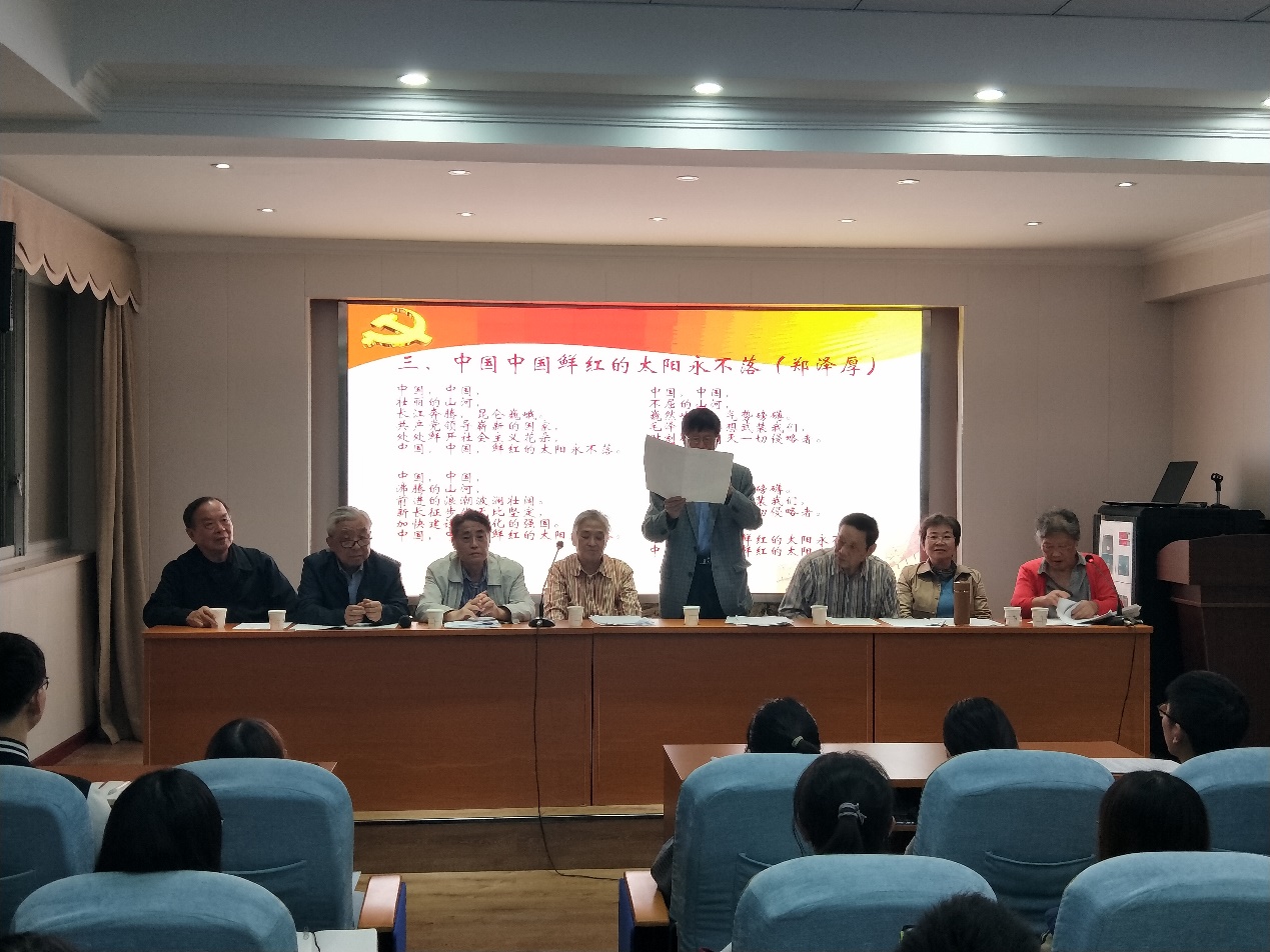 用歌声拨动初心的弦,用行动续写时代华章,歌声仍在继续。全体合唱《社会主义好》,徐学俊老师演唱《大中国》,郑玉美老师演唱《我爱你,中国》。整场活动出场即高潮,落幕仍巅峰,在《没有共产党就没有新中国》歌声中,此次活动圆满结束。(通讯员:刘琪瑶)