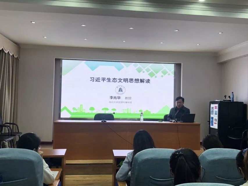 开班仪式结束后,公司党委书记李兆华为同学们进行了首场辅导报告。他结合生态文明建设的时代背景,对习近平生态文明思想进行了详细解读。他强调,习近平总书记的“两山论”深刻地揭示了生态系统的生态价值和经济价值的双重属性,生态文明不仅关乎民生、更关乎我们人类的生存与发展。他指出,国家全面进行生态文明建设,资环学子大有可为,并希望资环学子结合自身专业特点,践行习近平生态文明思想,为生态文明建设贡献自己的一份力量。