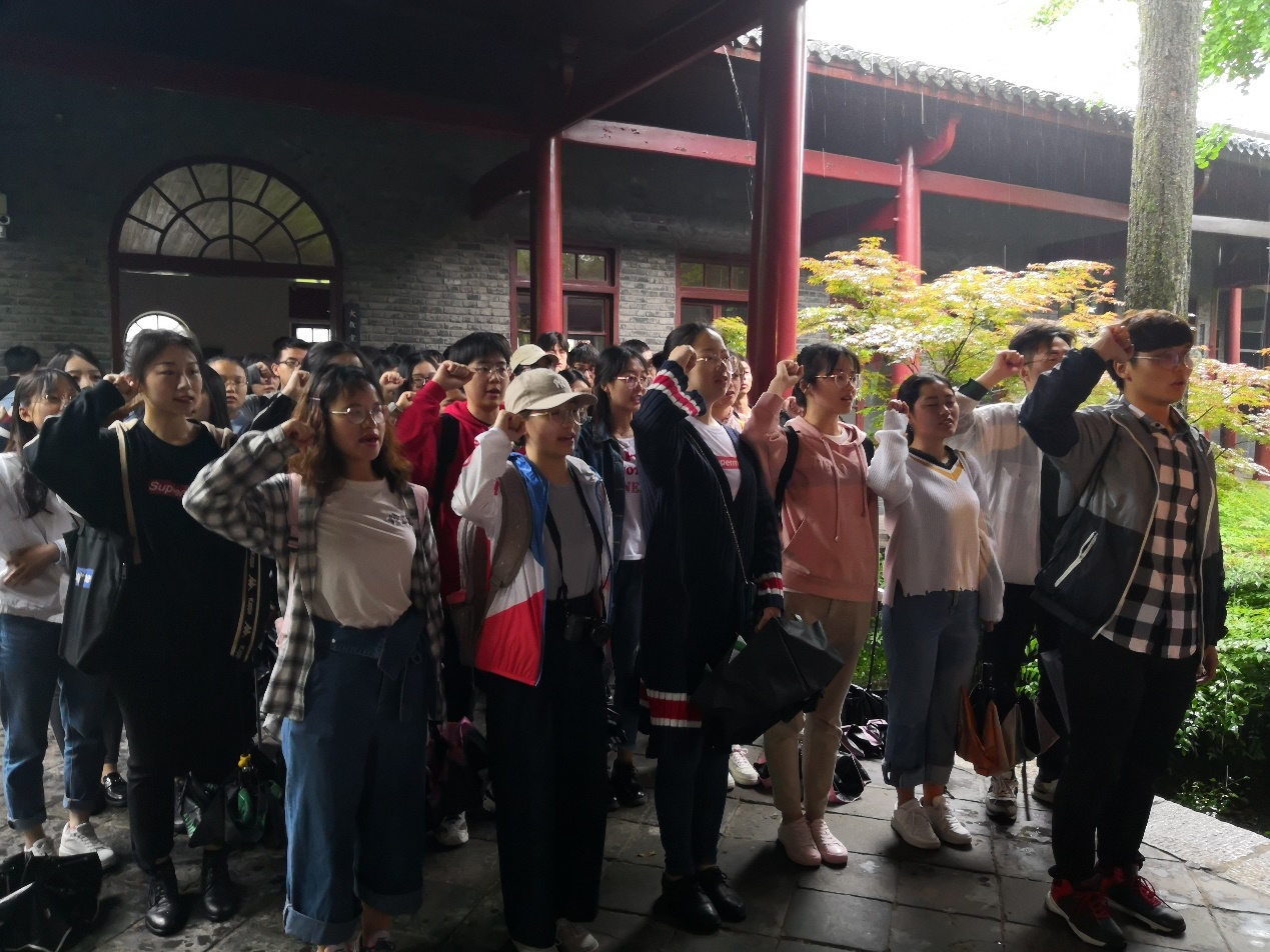 党培班的同志们先后参观了毛泽东同志主办的中央农民运动讲习所旧址纪念馆、武昌毛泽东同志旧居纪念馆和中共五大会址纪念馆并在党旗下庄严宣誓。来自2018级地理科学专业的邓静雯同志说;“走在雨中的红巷,感觉近代以来的沧桑历史依稀在眼前浮现。看到农讲所的教室、食堂、寝室,仿佛真的看到当年的热血青年为了实现革命理想而努力学习的情景。再想一想,我们今天有这么好的学习条件,更应该不忘初心,继续努力!”(通讯员:罗丽雯)