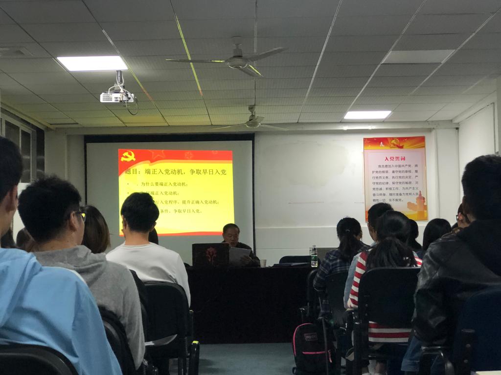 首先,彭老师从“为什么要端正入党动机”的角度,向同学们解释了端正入党动机是坚定共产主义的的首要前提;是巩固党的执政地位的客观需要;是保证党的先进性和纯洁性的基本要求;是正确行动的精神动力;是经受住党组织考验的重要保证。他的这番讲解使同学们对入党动机的有了更深的体会。
