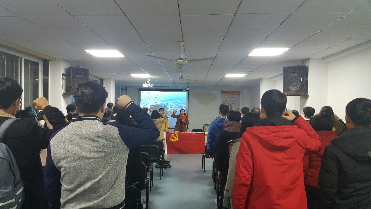会议刚开始,主持人胡宁月同志带领大家重温入党誓词,全体起立进行了铿锵有力的宣誓。接着三位支部委员向大家自我介绍,并介绍组织生活,让新加入的积极分子对支部有了更深的了解。