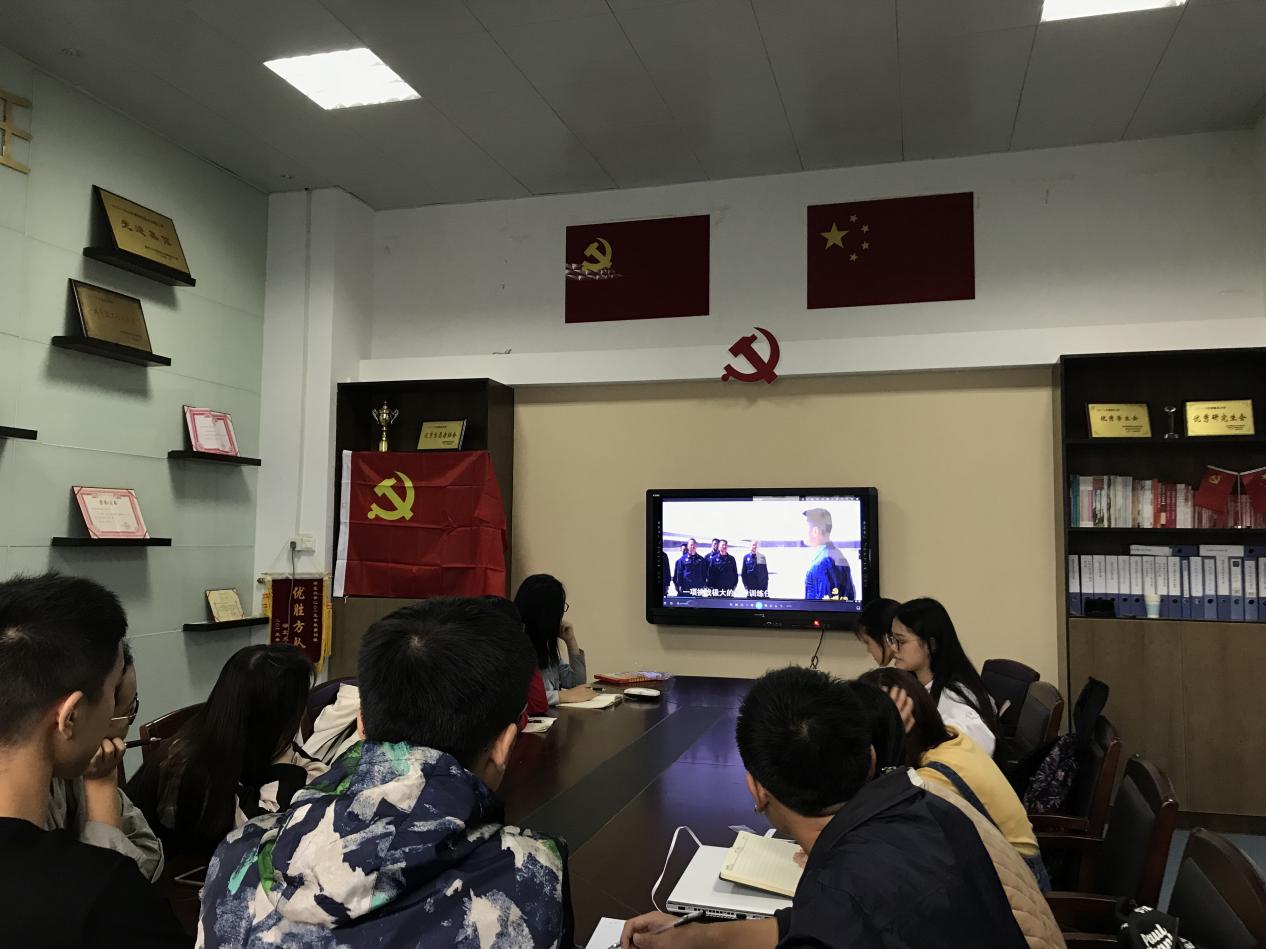 此次会议由15级预备党员陈晨主持,她由视频切入,将飞行员刘锐、塘约村党支部及“太行公仆”吴金印的感人故事呈现在大家面前。这部反映优秀共产党员和先进基层党组织典型事迹的专题节目《榜样》带来的感动远不止这些故事而已,先进事迹的再现、嘉宾现场讲述,我们感悟到平凡故事所蕴含的深刻道理,先进典型模范事迹诠释着党的崇高理想,展现了一代又一代共产党人不忘初心的执着坚守,彰显了当代共产党人信仰坚定、心系群众、勇于担当、创新奉献的精神风貌。